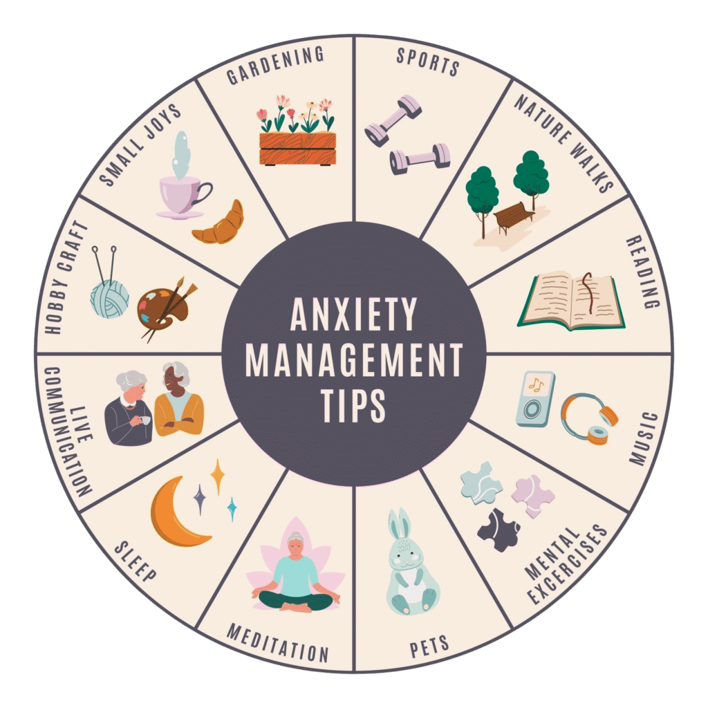 We provide practical strategies such as grounding methods, breathing exercises, thought reframing.